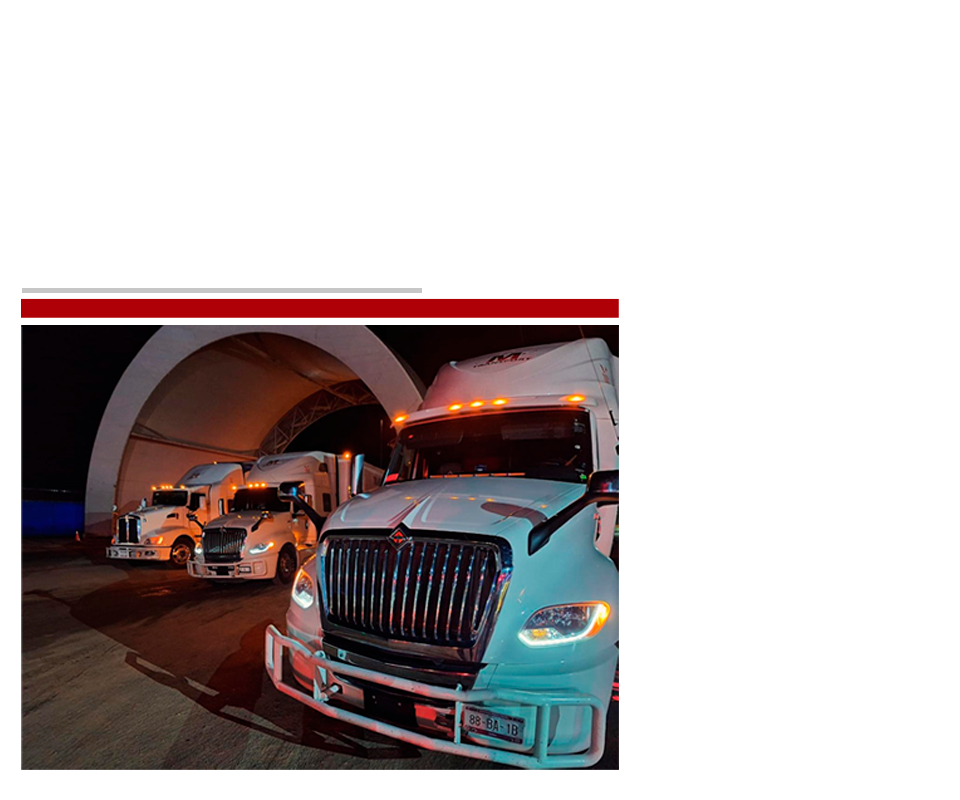 Además, hemos ampliado nuestra gama de servicios con 10 cajas refrigeradas de 53 pies, diseñadas para productos que requieren transporte con temperatura controlada. Nuestro enfoque en tecnología y mantenimiento constante asegura que nuestras unidades estén siempre listas para cumplir con tus necesidades logísticas.
